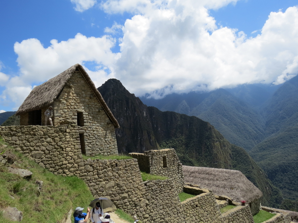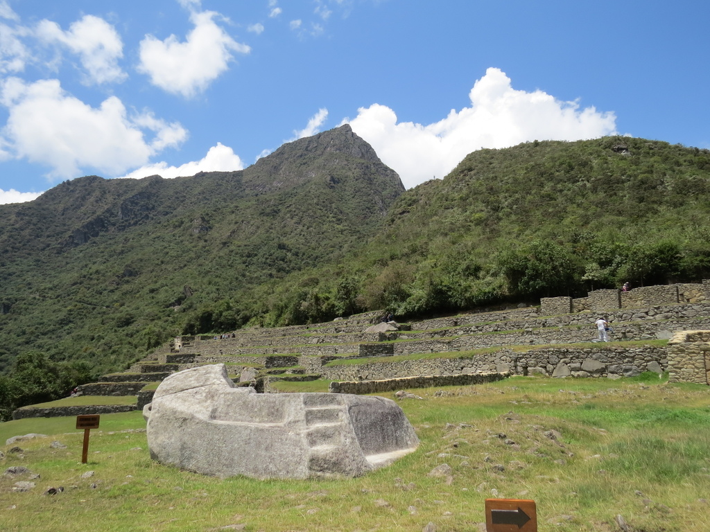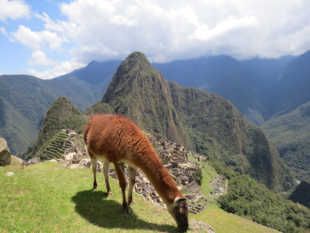 在小米導遊介紹完馬丘比丘歷史、大夥照了張團體照後,就各自對這神秘之地,在石群陣中逐一進行探索、擺各種pose、連站在山丘小石屋旁的一頭原駝(Guanacos)都成為被「抓景」的對象…