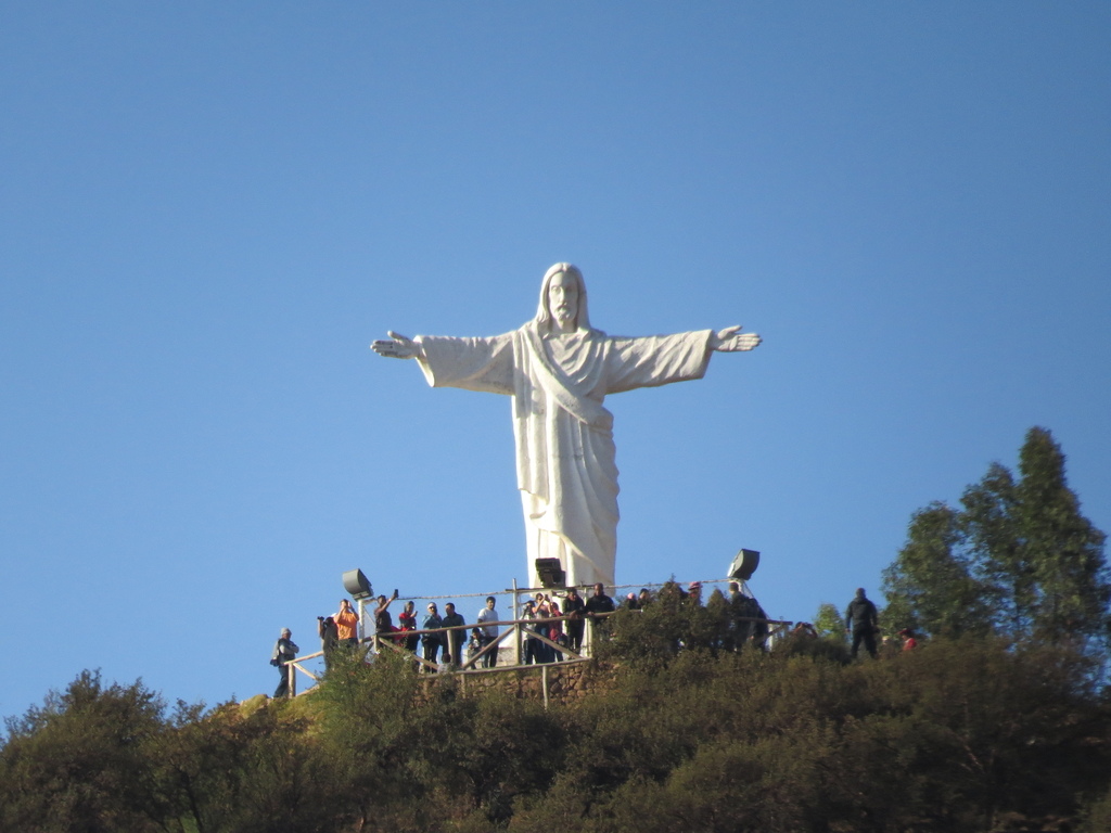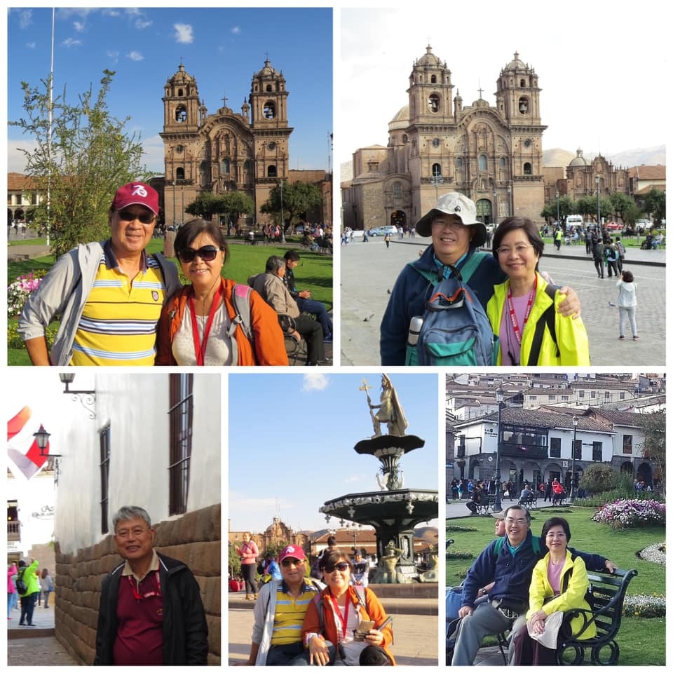 當天行程雖緊湊,仍給我們還算充裕的時間在廣場上自由「放風」,也讓大家滿足不少「它抓得住我」【台灣四、五年級的人才知其意】的樂趣!【我還用長鏡頭照到一張在普卡穆庫(Pukamuqu)山頂上所佇立著那一尊名為「白色基督(Cristo Blanco)」的雕像】