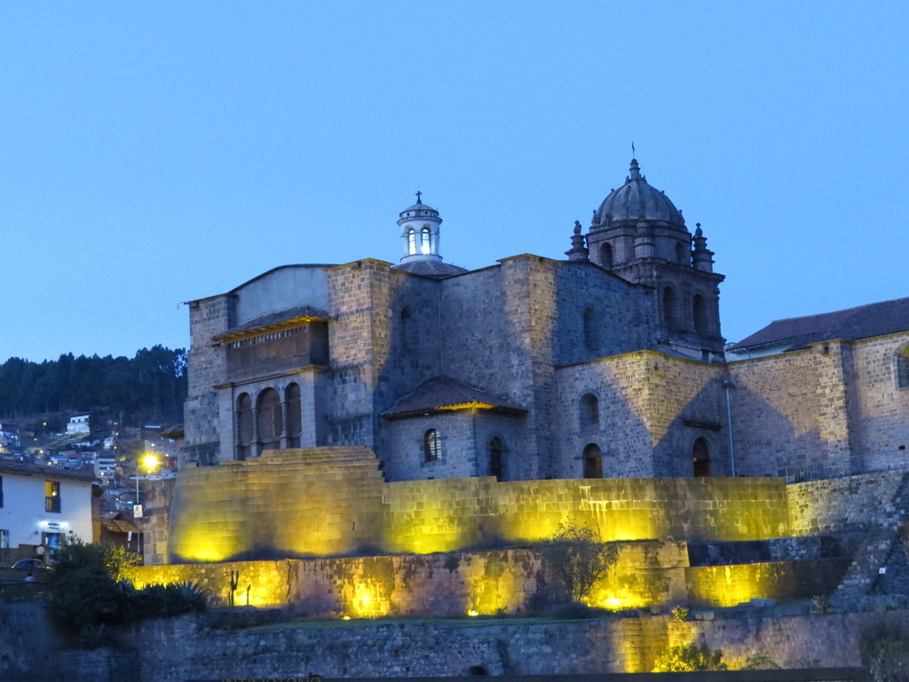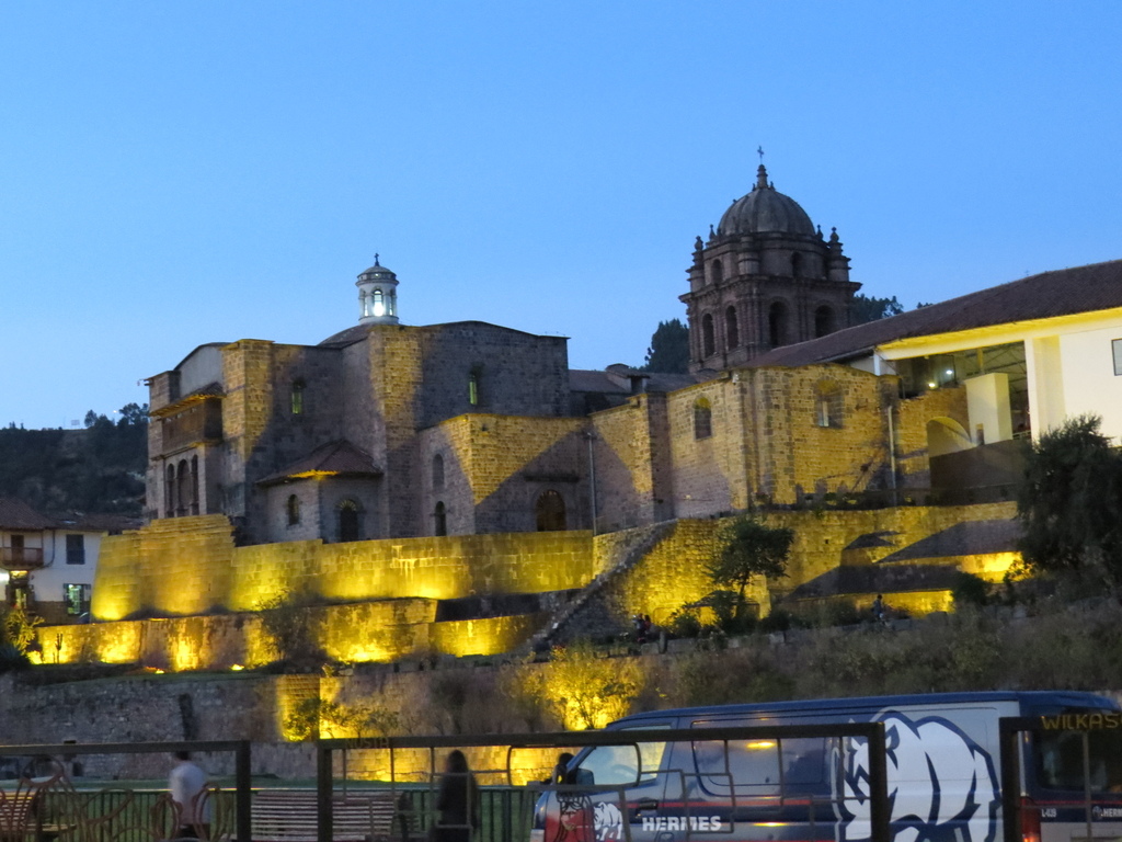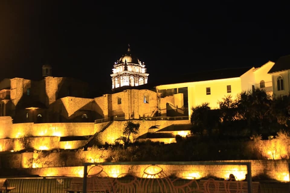 一頓豐富的晚餐後,我們隨興散步觀賞廣場上的夜景;特別是那既是印加人的「太陽神廟」、又曾是西班牙人的「聖多明哥修道院」,而現都屬於秘魯的「國寶」…在晚上打上燈光後感覺既神聖又高貴。