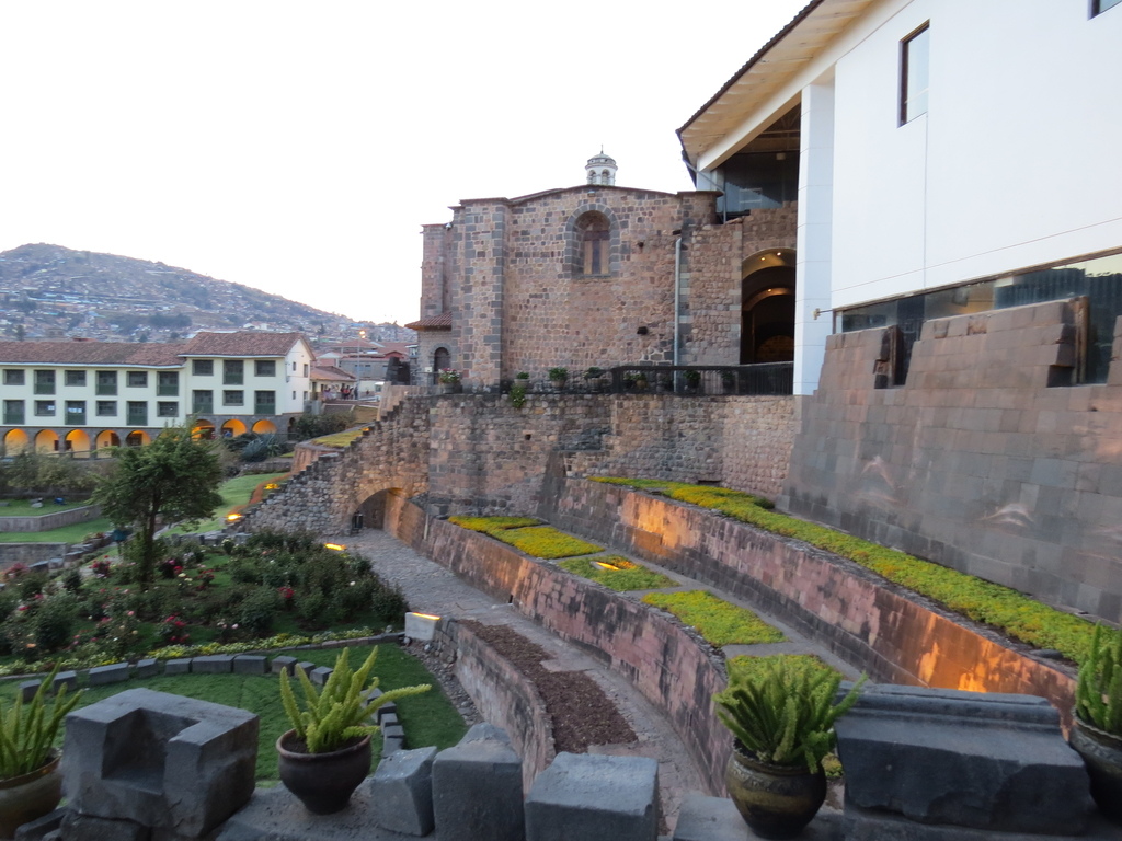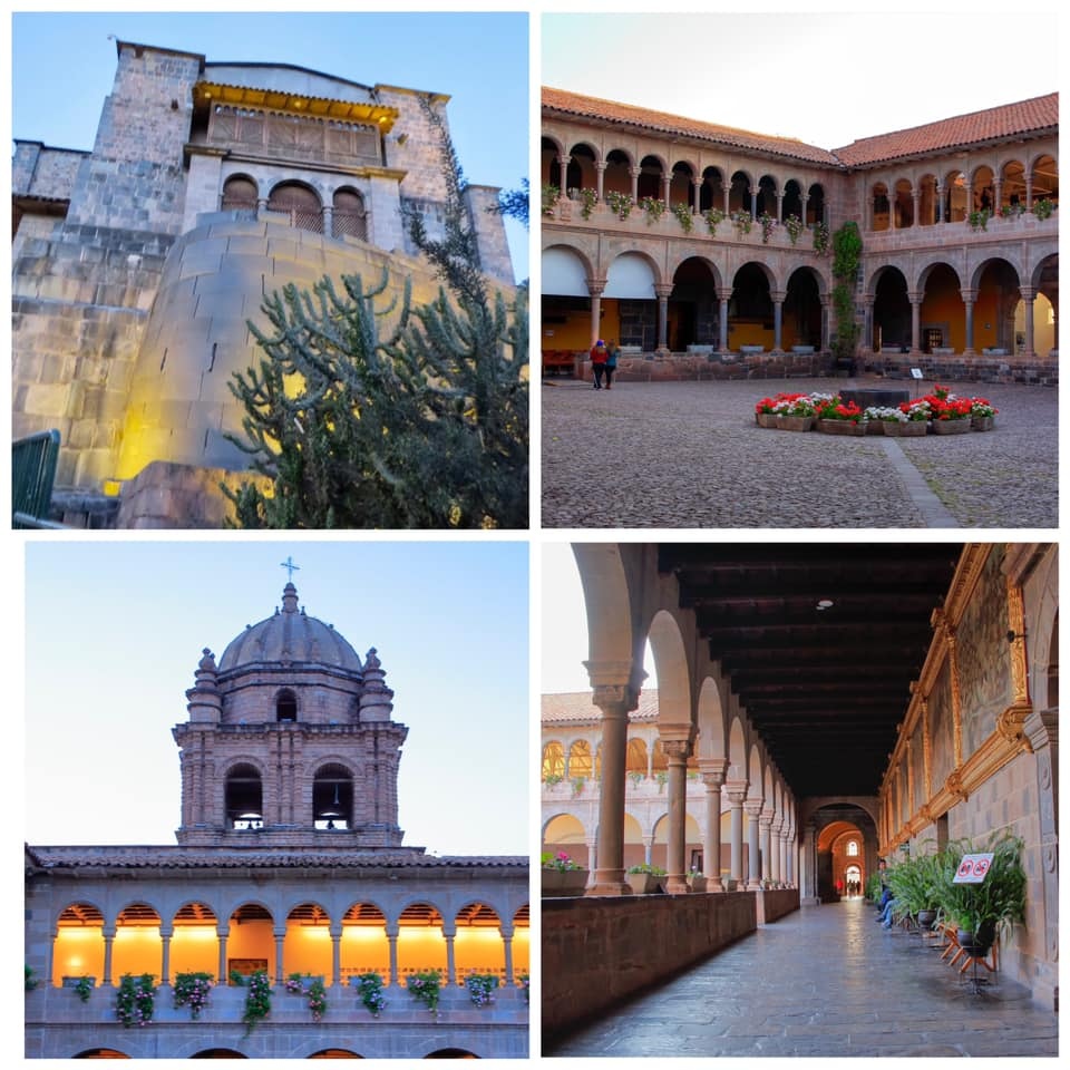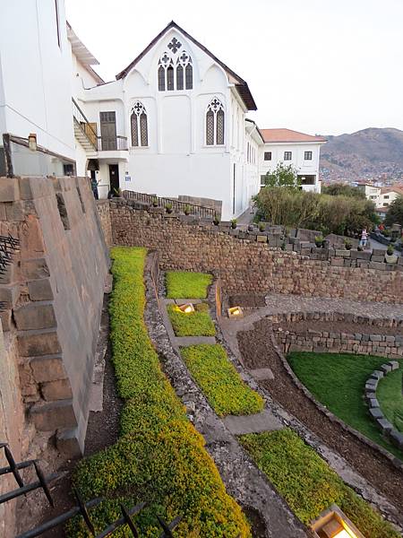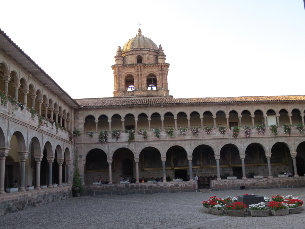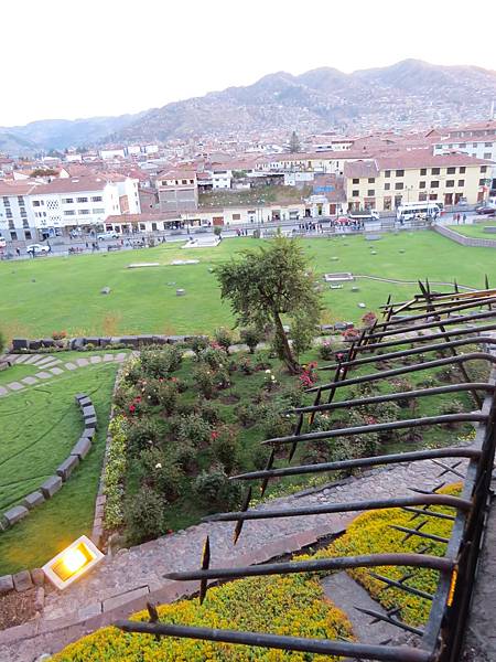 我們入內參觀,當然看不到神廟的黃金、雕像或任何古印加的文物,所見的是修道院的西班牙式中庭、迴廊與壁畫,以及漂亮的草坪與花埔。