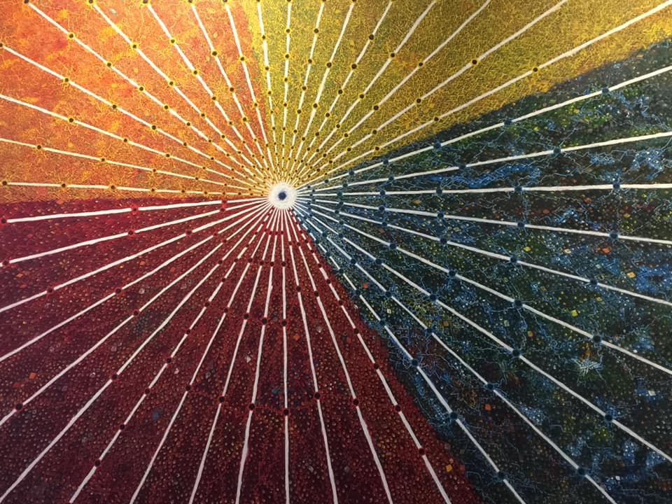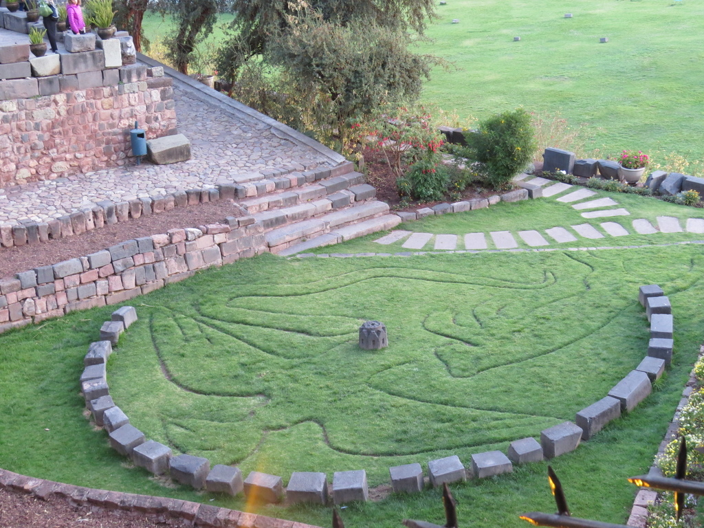 【在這「神廟」之遊四年後,想寫一些當時所見的「亮點」時,卻從照片中找不到可值得一提的素材,就問Kevin那時他是否看到讓他印象深刻的…結果他Line給我以下他照的這一張看似既科幻神奇又充滿藝術感的圖畫與相關文字介紹(續又發送若干網路連結) 。經稍加研讀後,才知這印加人稱為“the Seqe system of Cusco”圖可是大有來頭:這是以太陽神廟為中心,用想像中的一種「輻射線」(我認為是「光芒線」)把庫斯科所有的城鎮、廟宇、神壇、聖地…以錯綜複雜地方式把宗教精神連結在一起…十分驚訝吧!】
