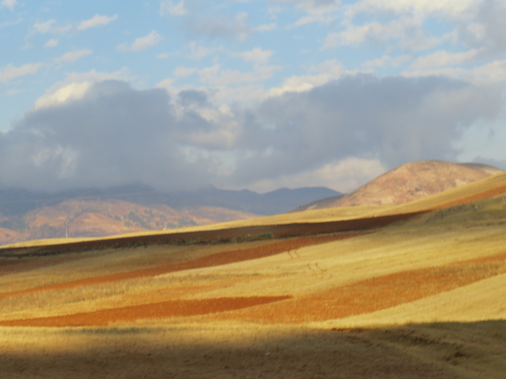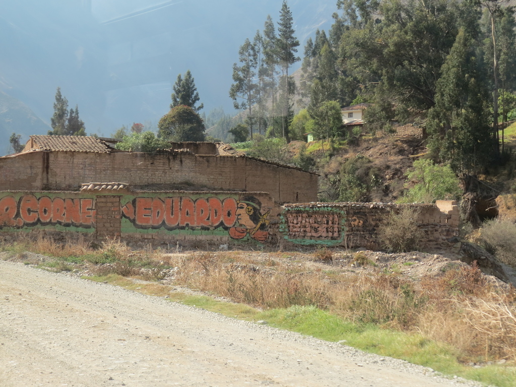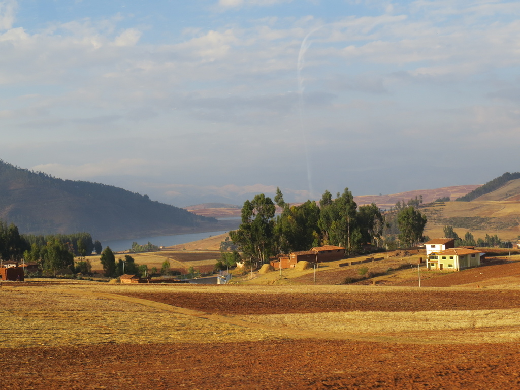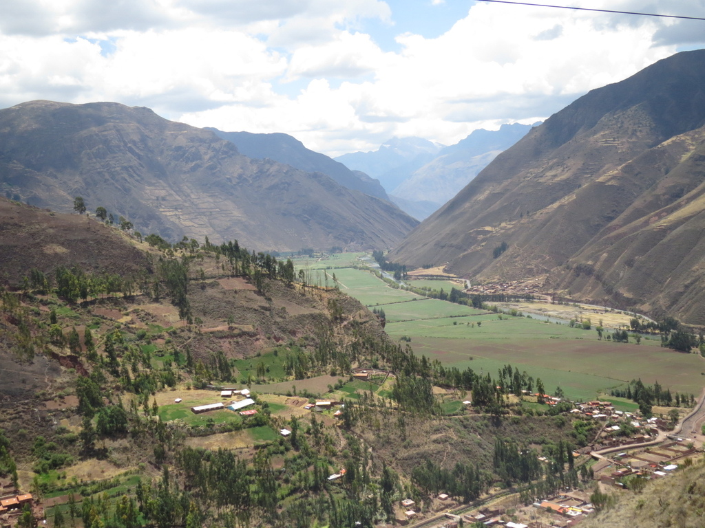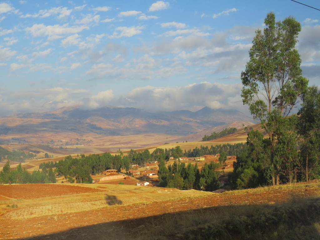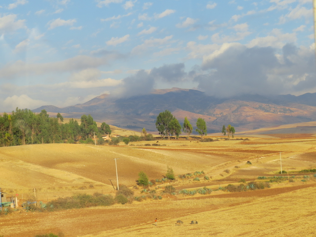 在這約 73公里一路下行(從海拔3354公尺降到2797公尺)的車程對在庫斯科已有高原反應的來說,則是相對感到舒適的。大巴沿著山谷而行,看到遠方的山頭交織著山嵐、白雲與呈現出黃、棕、咖啡色深淺不一的高原美景…