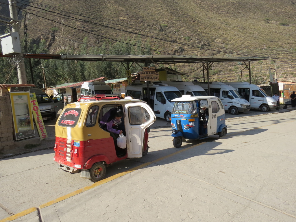 下午4時許再搭上回程的觀光火車返回奧揚泰坦博(看到有趣的三輪Taxi),途中團友們不是在舒適的座位上輕鬆補眠,就是檢視整理手機或相機內豐富的「戰果」。