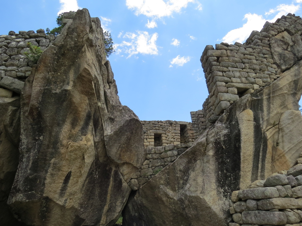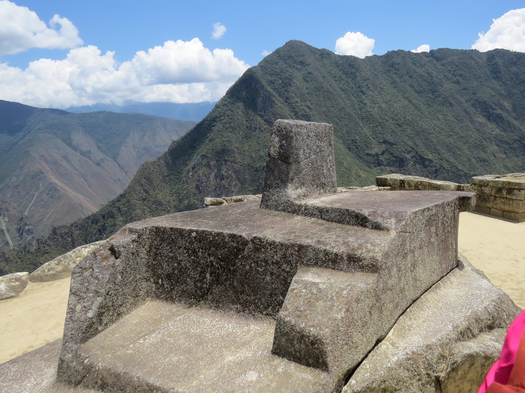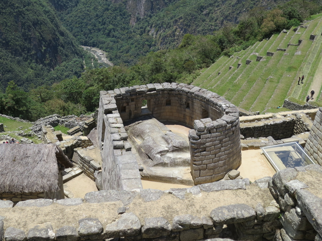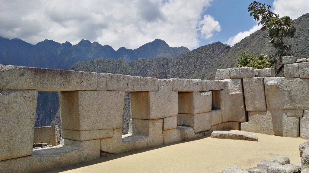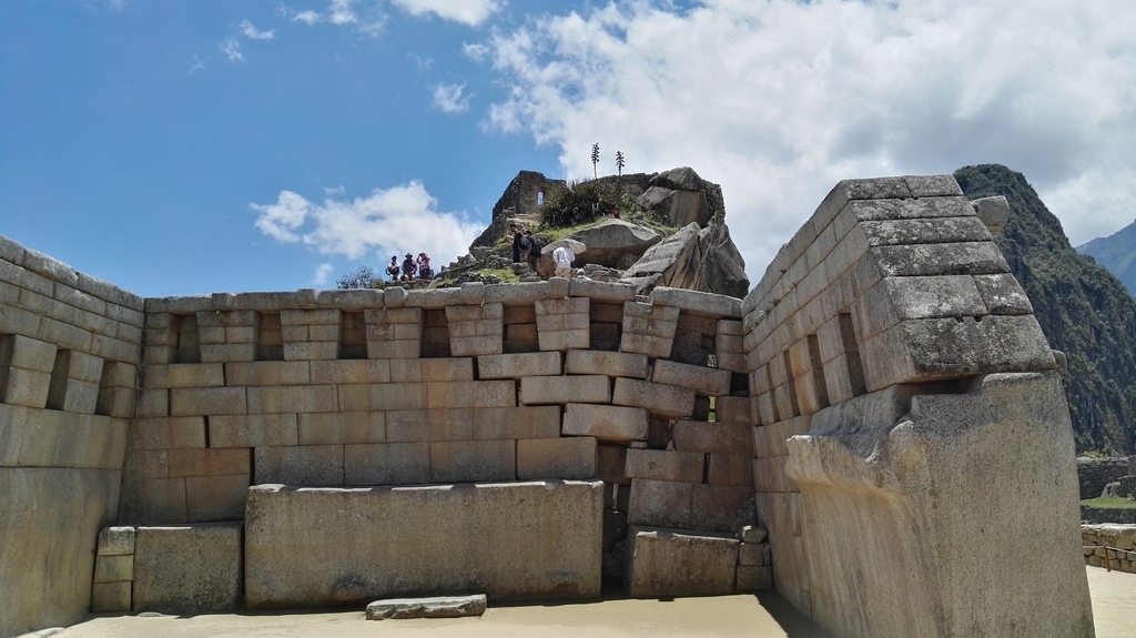 以及獻給最偉大的太陽神因蒂的「神聖區」(包括有重大考古學價值的「太陽廟(Temple of the Sun or Torreon)」、「三窗之屋(Trapezoidal Windows)【照片取材來源】」和「拴日石(Intihuatana)」【依序如以下照片】;據說而拴日石是印加人設計的天文學時鐘。