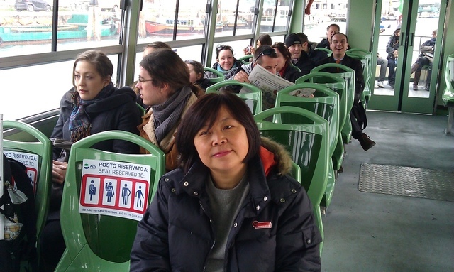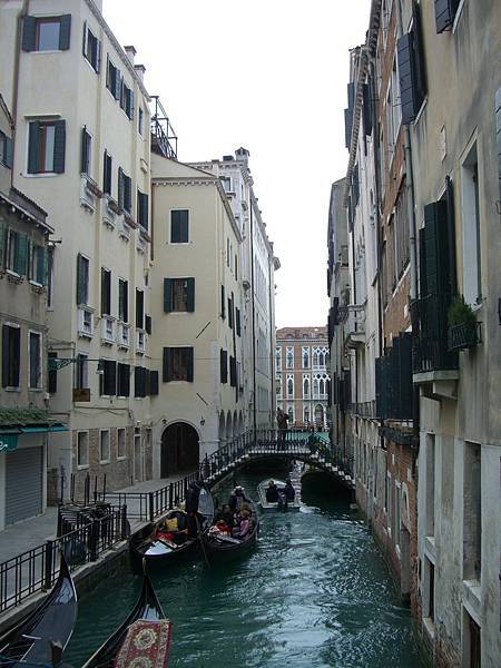 從維洛納乘火車到達威尼斯 (Venice) (Santa Lucia車站下) 也就只不過短短的1個半小時,卻讓人感覺到一種莫名的「迫不及待」。一到了這個心中的「夢幻之都」就更令人興奮到「無法自已」!我們雖帶著行李,但還是先搭乘水上巴士 (Vaporetto) 順著大運河繞了這「水都」一大圈,瀏覽整個運河兩岸美景(圖70),再轉乘到Rialto 站,費了一翻功夫才終於在一個「難得寧靜」的小巷中找到我們要在此住3晚的一家叫做“Hotel Casa Cosmo”的傳統義式民宿。