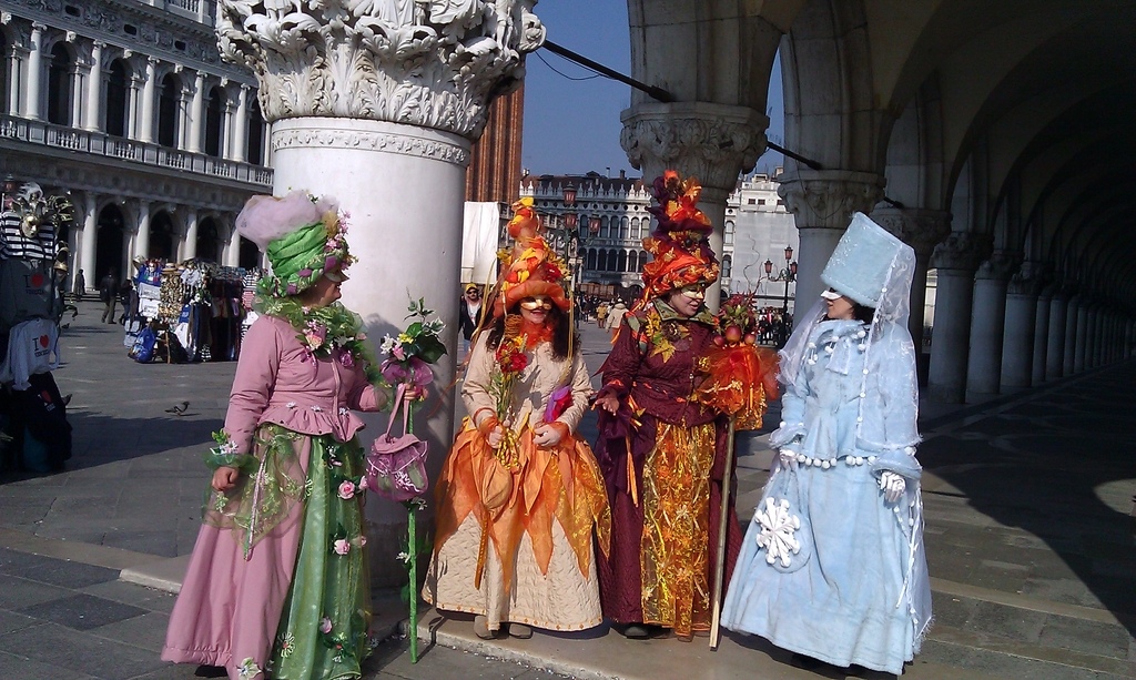 此趟雖十分豐富,但仍因未能剛好配合日期參與神秘豔麗始於1162年的「威尼斯嘉年華會 (Carnival of Venice)」【大約在每年2、3月舉行,有長達兩週的節慶活動】而只能拍些遊客的嘉年華盛裝打扮及商店櫥窗的面具以聊表我們的參與。另外,不知何故我們居然未詩情畫意地共乘「貢多拉(Gondola)」穿梭於羅曼蒂克的水道而留下唯二的遺憾。