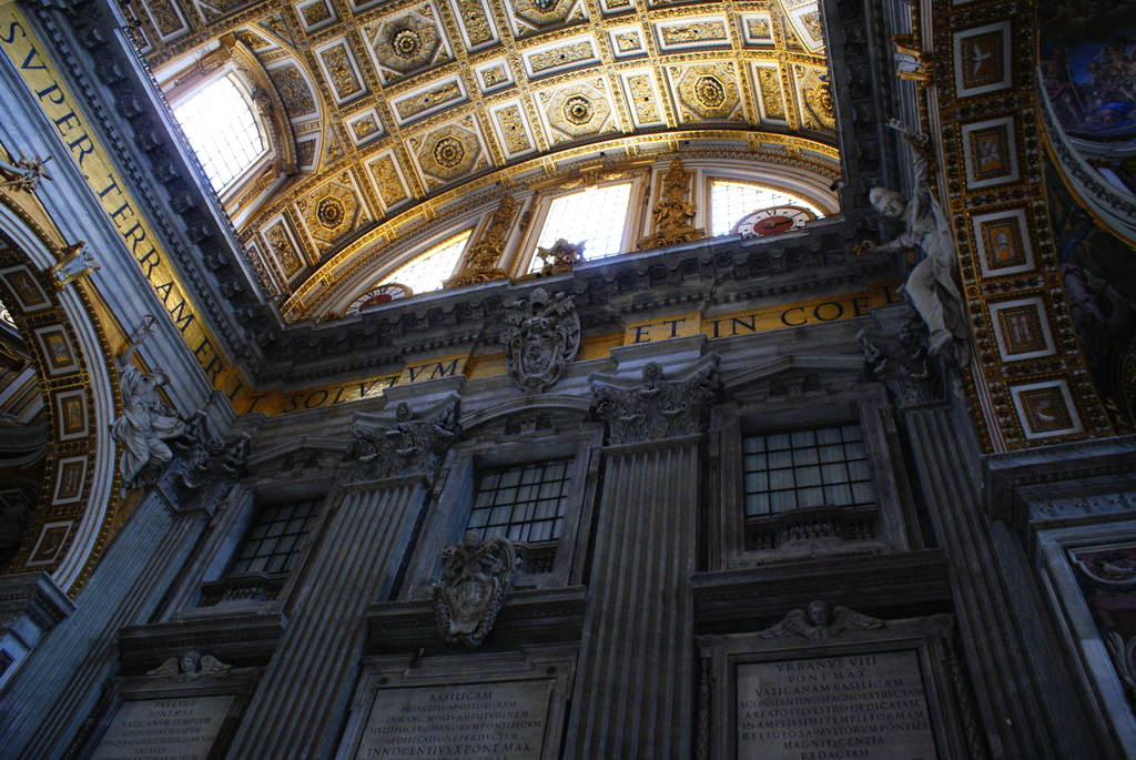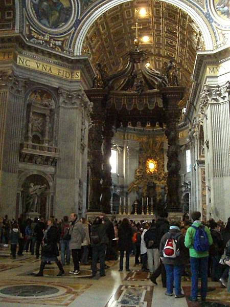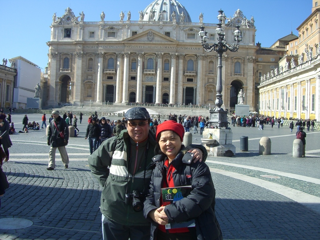 我們第一天就搭地鐵到 Ottaviano 站後,步行15分鐘就到「世界最小的國家」──梵諦岡教皇國 (Citta del Vaticano),來看她所擁有世界最大的教堂──「聖彼得教堂 (Basilica Papale di San Pietro)」。進入教堂前要在外排隊的「聖彼得廣場」,豈只用「壯觀」兩字就可以形容的。入內後,觸目所及的「雕樑畫棟」、「金碧輝煌」又怎能用「震撼」兩字可以表達。